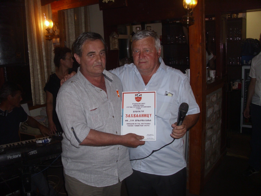 По завршетку утакмице настављена је прослава у ресторану „Моја кафана“ у Врњачкој Бањи где је обављена и свечаност поводом 80 година постојања и рада овог узорног спортског колектива. Златну плакету у име руководства ФС Рашког округа уручио је потпредседник Савеза господин Горан Жерађанин, а уручене су пригодне награде и испред локалне самоуправе Врњачка Бања, ФСО Врњачка Бања и судијске организације ФСО Врњачка Бања.